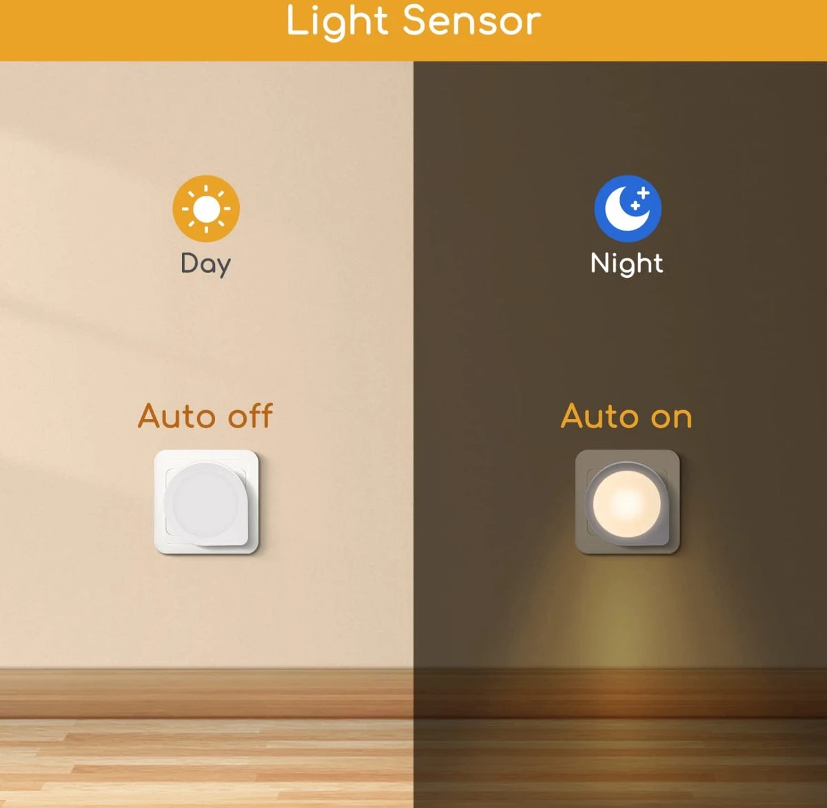 u hoeft het nachtlampje overdag niet uit het stopcontact te halen dankzij de dageraad-/schemeringstechnologie. Dit nachtlampje gaat overdag automatisch uit en gaat ’s nachts aan.