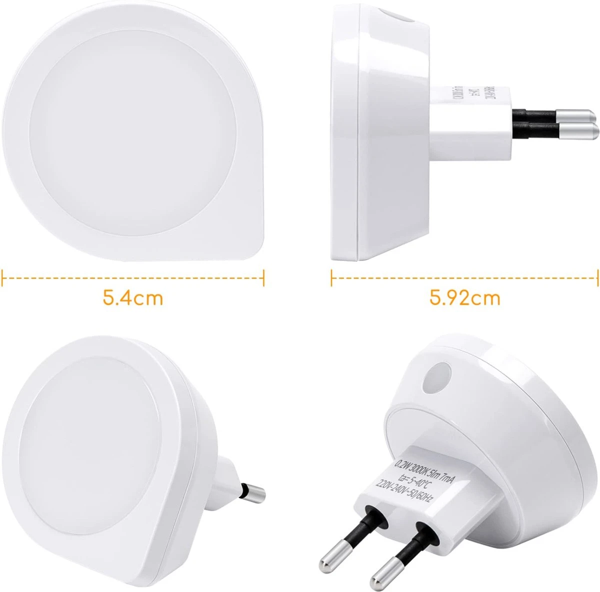 Deze eenvoudige nachtlampjes hebben een rond ontwerp en een energiezuinige LED. Ze creëren in elke kamer een rustgevende verlichting. Dankzij hun vermogen om licht waar te nemen, gaan ze ’s nachts aan en in de ochtend uit, waardoor ze een geweldige keuze zijn voor mensen die wat extra hulp kunnen gebruiken bij het navigeren door hun slaapkamers, trappenhuizen, gangen en andere plekken tijdens de donkere uren.
