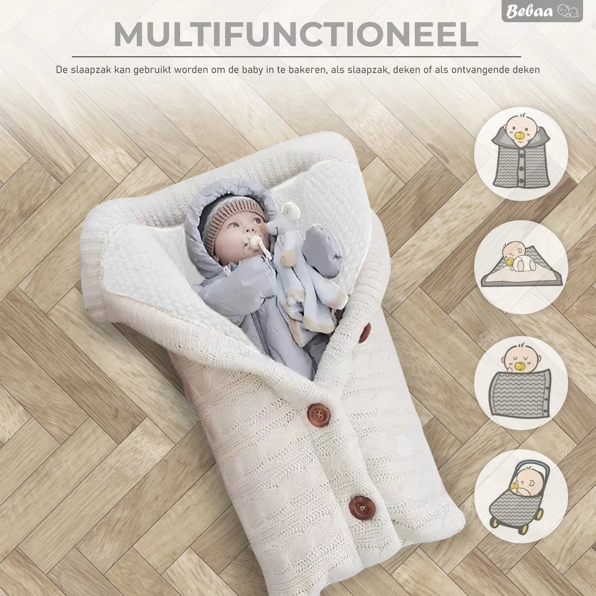 Ben jij op zoek naar een comfortabele slaapzak waar jouw baby goed en lekker warm in kan slapen? In Bebaa’s® gebreide babyslaapzak ziet jouw kleintje er niet alleen super schattig uit, maar zal hij of zij ook nog eens heerlijk kunnen slapen. De slaapzak is voorzien van een gebreide buitenkant en een zachte fleece binnenkant. Hierdoor voelt de slaapzak zeer comfortabel en luchtig aan, wat goed is voor het tere babyhuidje. De baby kan zich in deze slaapzak lekker blijven bewegen, terwijl de warmte toch goed wordt vastgehouden.