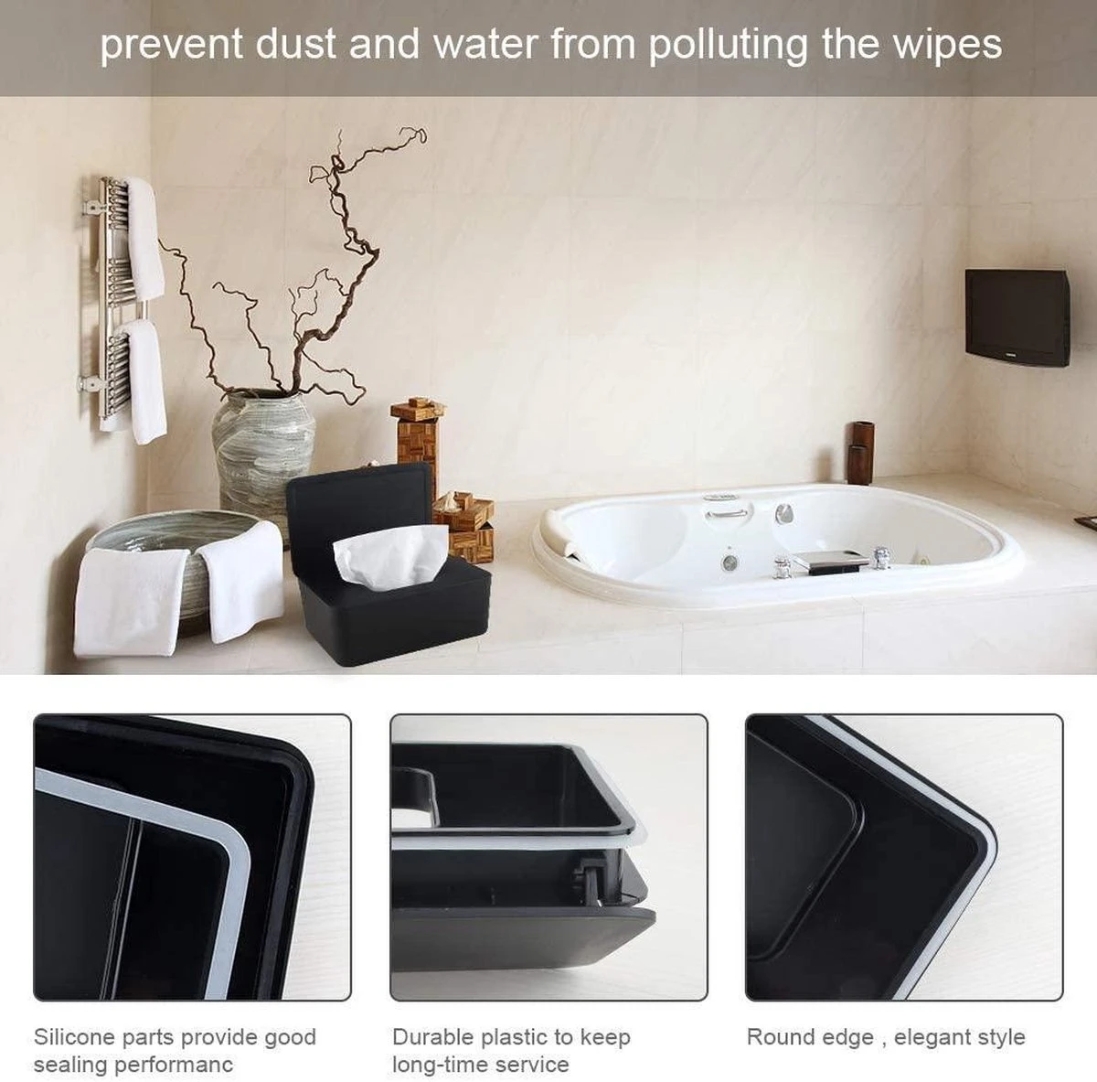 BillendoekjesDoos – Zinaps Baby Wipes Box, Opbergdoos Voor Natte Doekjes, Babydoekjes Case Toilet Papier Doos Weefsel Houder Plastic Nat Dispenser Tissue Box Servet Box (zwart) (WK 02129)