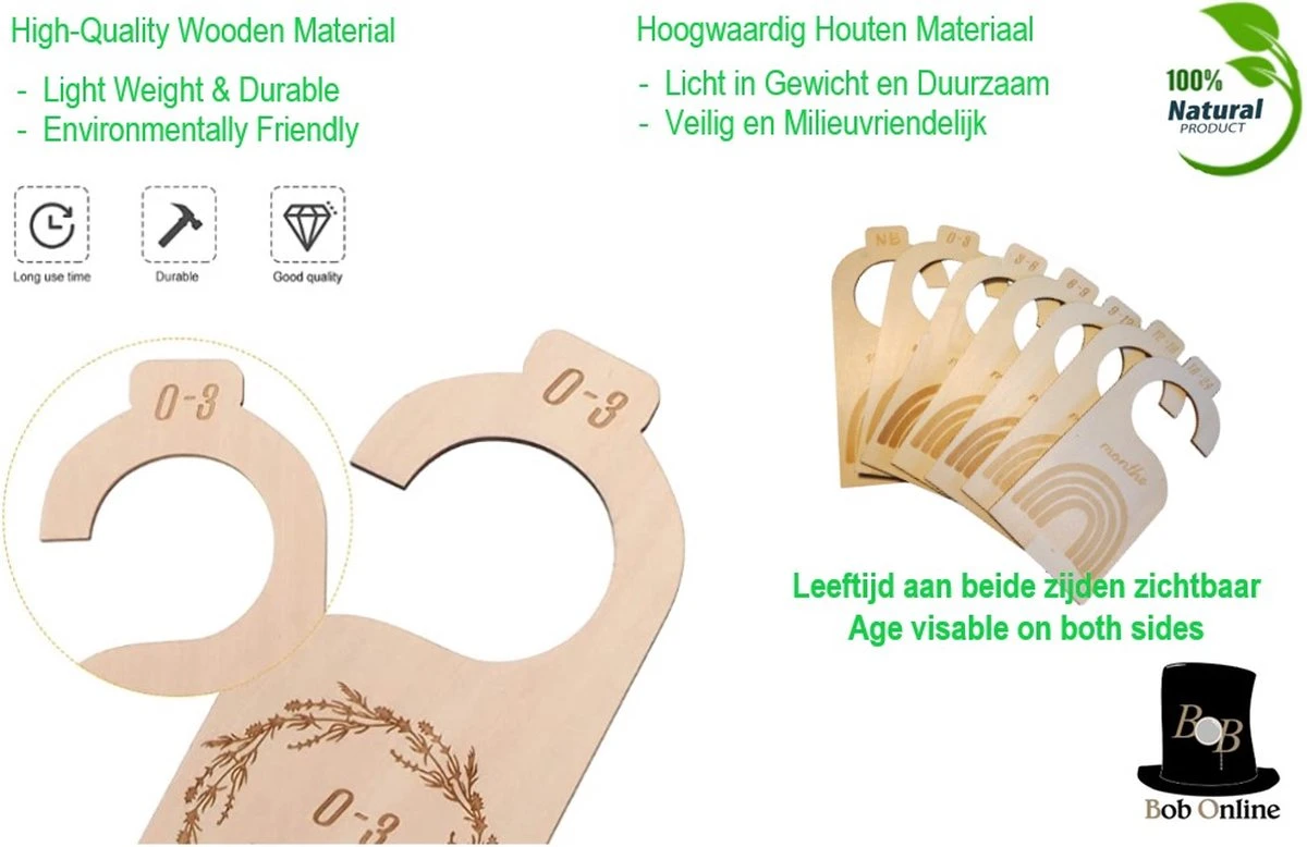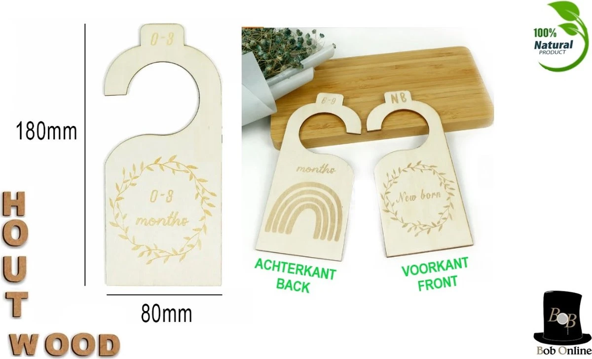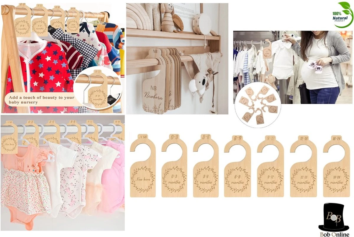 Your package includes 7 pieces wooden baby cupboard clothing dividers, each divider is laser engraved and indicates certain age categories ranging from new born (nb), 0-3 months, 3-6 months, 6-9 months, 9-12 months, 12–18 months and 18-24 months.