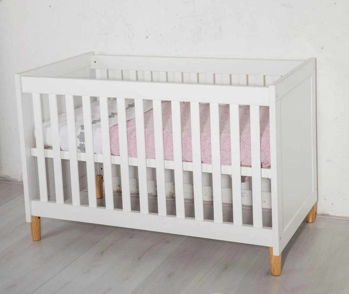 Een extra leuk detail is dat dit baby ledikant is afgewerkt met naturel houten pootjes. Daarnaast is de bodem van dit ledikant in hoogte verstelbaar.