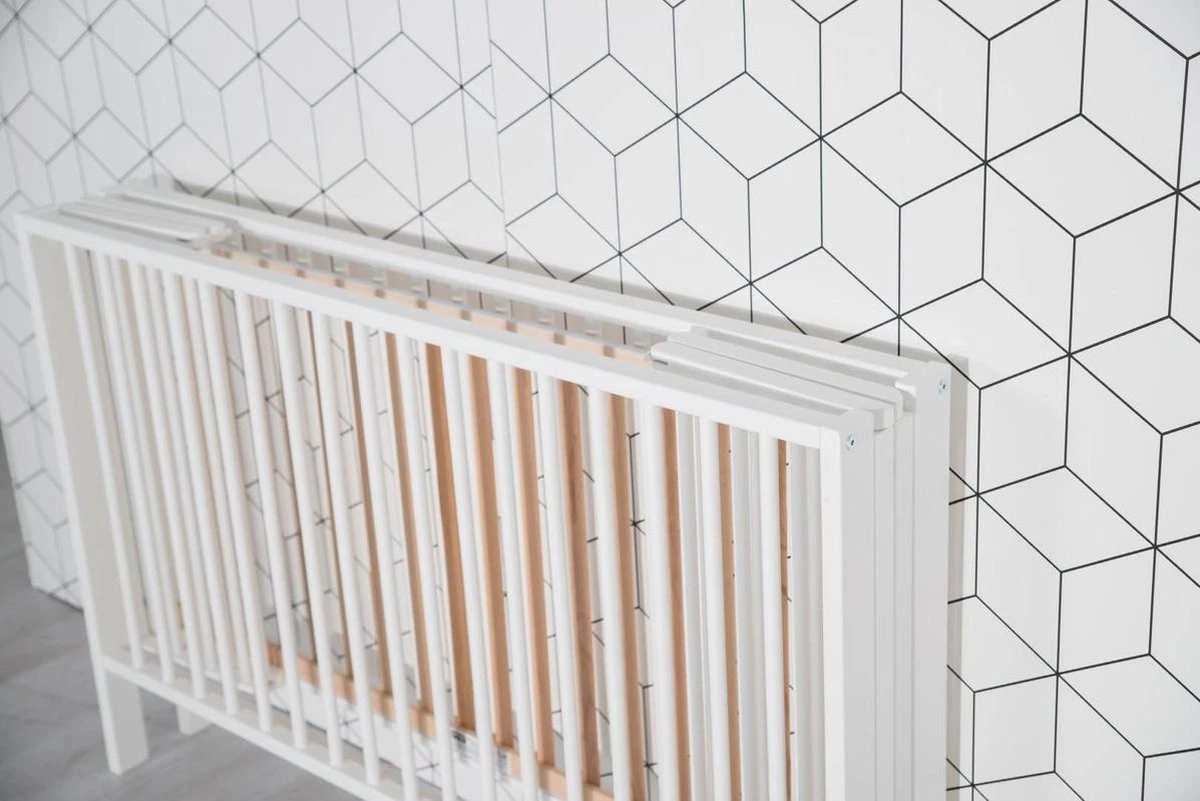 De hoogte van dit ledikant is 85 cm. Dit ledikantje is inklapbaar, wat ervoor zorgt dat het ook uitermate geschikt is op een logeeradres.
