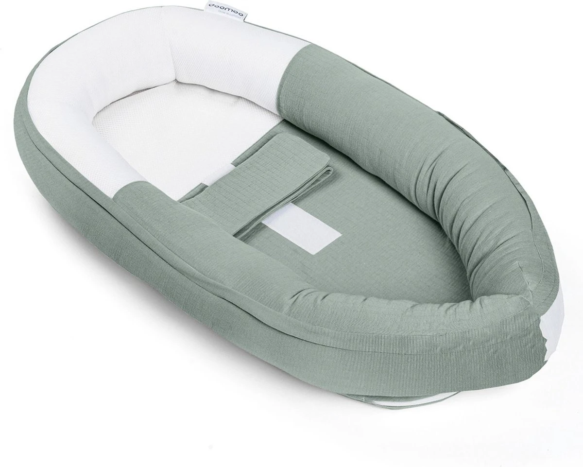 De doomoo Cocoon creëert een op maat gemaakt plaatsje voor je baby en bezorgt hem een veilig gevoel bij de overgang van mama’s knusse buik naar z’n eigen bedje.