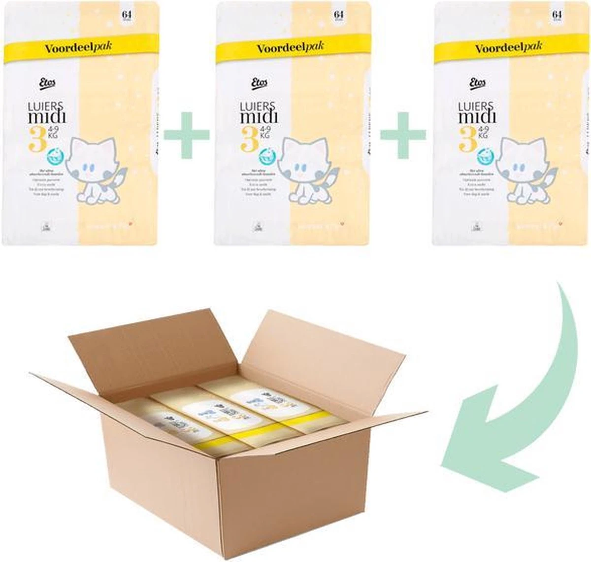 Etos Woezel & Pip Luiers Midi 3 zijn geschikt voor kindjes van 4 tot 9 kg.