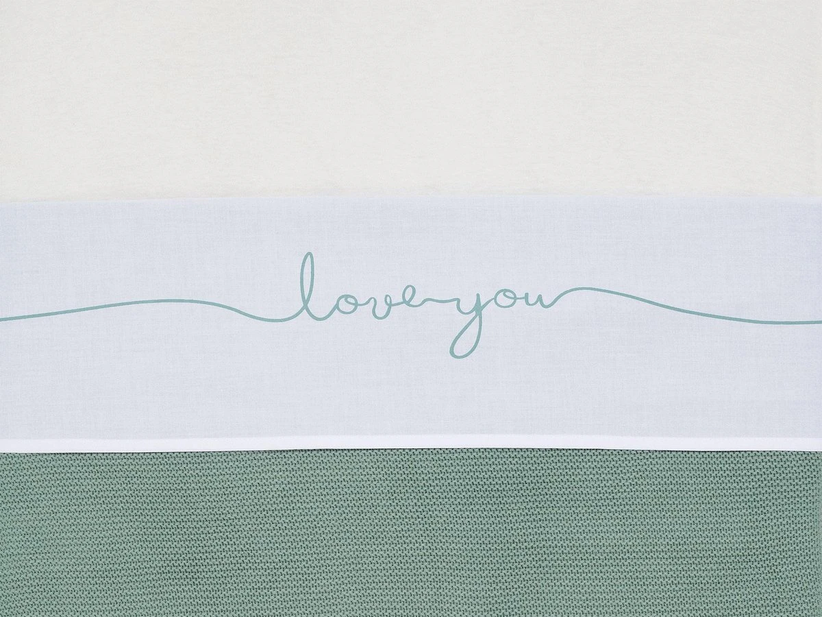 Met een wit lakentje kun je het bedje van jouw baby veilig, kort en strak opmaken. Door de zijkanten van het lakentje onder het matrasje te stoppen, slaapt jouw kleintje niet alleen veilig, maar heeft het ook een geborgen gevoel. Dit lieve lakentje met de tekst ‘love you’ past perfect bij de dekens uit het Basic knit thema en het Bliss knit thema van Jollein.
