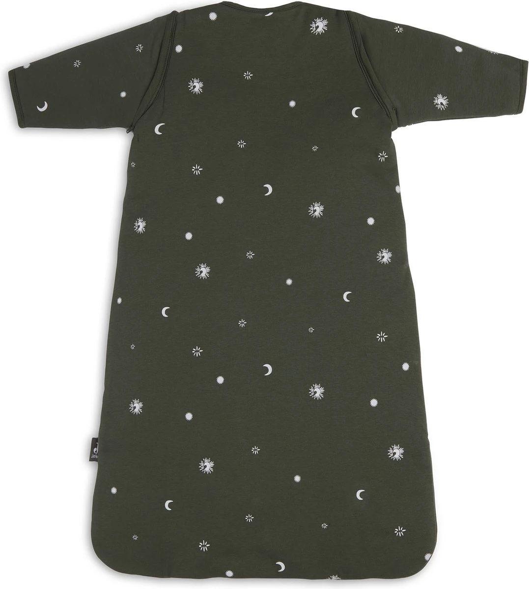 Heb jij ook een vast avondritueel met jouw kleintje? Even samen een boekje lezen of een liedje zingen, slaapzakje aan en lekker instoppen? Deze fijne babyslaapzak met stoere print gemaakt van Jersey heeft afritsbare mouwen. Zo tover je hem om van een TOG-waarde van 3.0 voor de koude winterdagen naar een TOG-waarde 2.0 voor de frisse nachten in de lente en het najaar. Een slaapzak geeft jouw baby een geborgen gevoel, geeft warmte én beperkt de bewegingsvrijheid. Wel zo fijn met jouw actieve deugniet. Is de slaapzak nog niet warm genoeg? Deze slaapzak is goed te combineren met de dekentjes uit de Pure Knit collectie van Jollein in de kleur Naturel, Biscuit of Leaf Green.