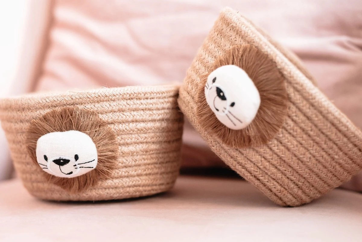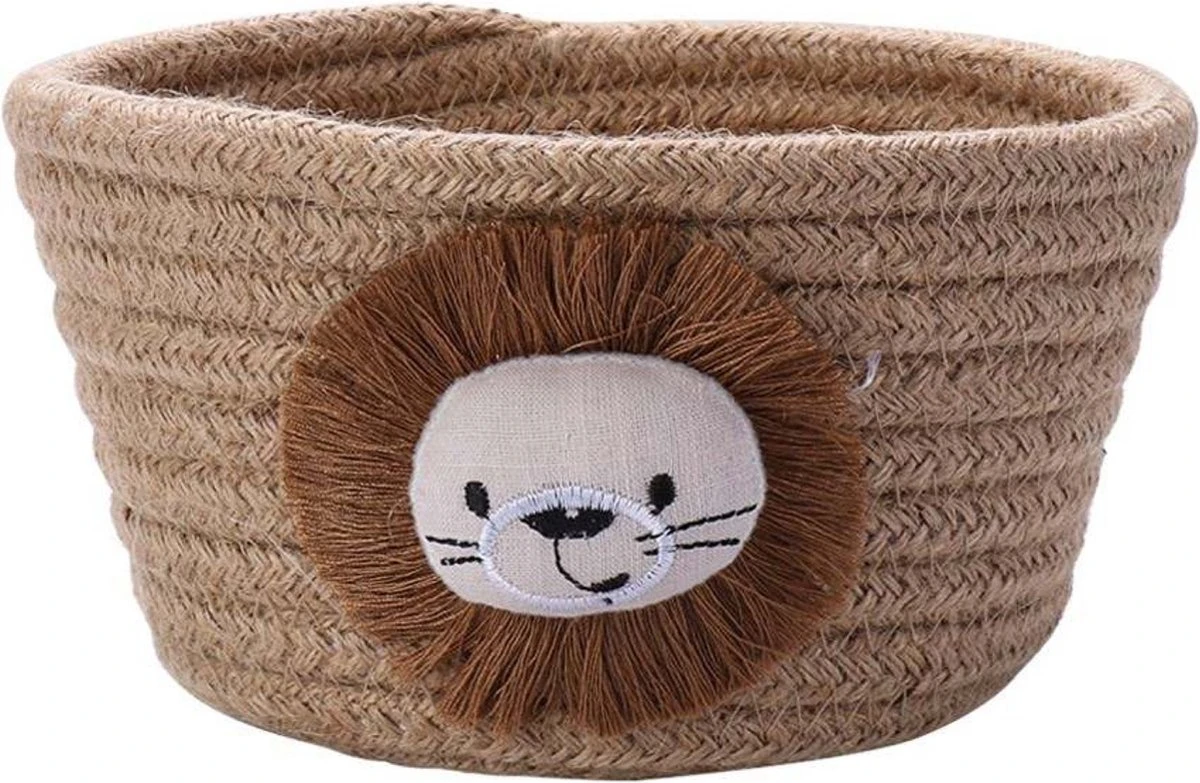 Dit jute commodemandje (1 stuk) is een prachtige toevoeging aan elke babykamer. Je kunt er allerlei verzorgingsproducten voor de baby netjes in opbergen. Het 3D leeuwtje aan de voorkant geeft dit commode mandje een stoere en originele uitstraling.
