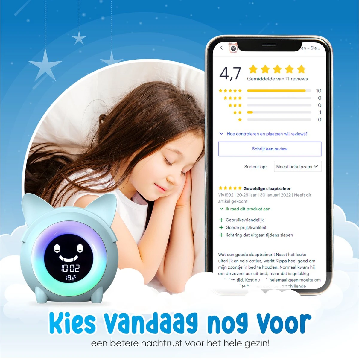 Ook de stille wens om ’s ochtends eerst rustig te ontwaken voordat jouw kleine je wakker maakt? Ideaal toch? Met de Kippa slaaptrainer is hiermee wachten totdat je kind kan klokkijken dan ook verleden tijd!