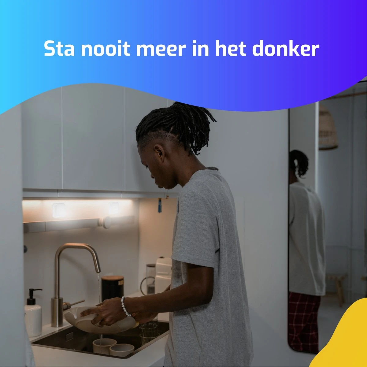 De LED-verlichting kan op allerlei verschillende plekken worden bevestigd. Op de trap bijvoorbeeld, in de kast, boven het aanrecht of in de badkamer. De lampjes zijn dankzij een speciale sensor zuinig in gebruik en springen alleen aan als er beweging is. Na twintig seconden schakelen ze zichzelf weer uit. Is er in de omgeving al voldoende belichting? Dan geven ze geen licht.