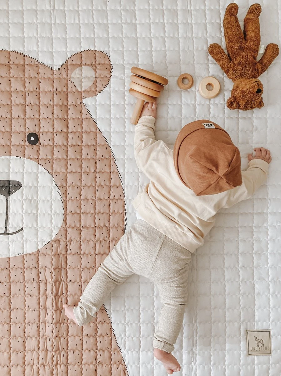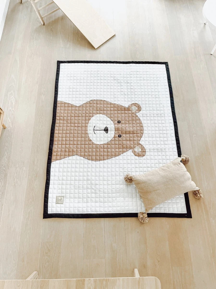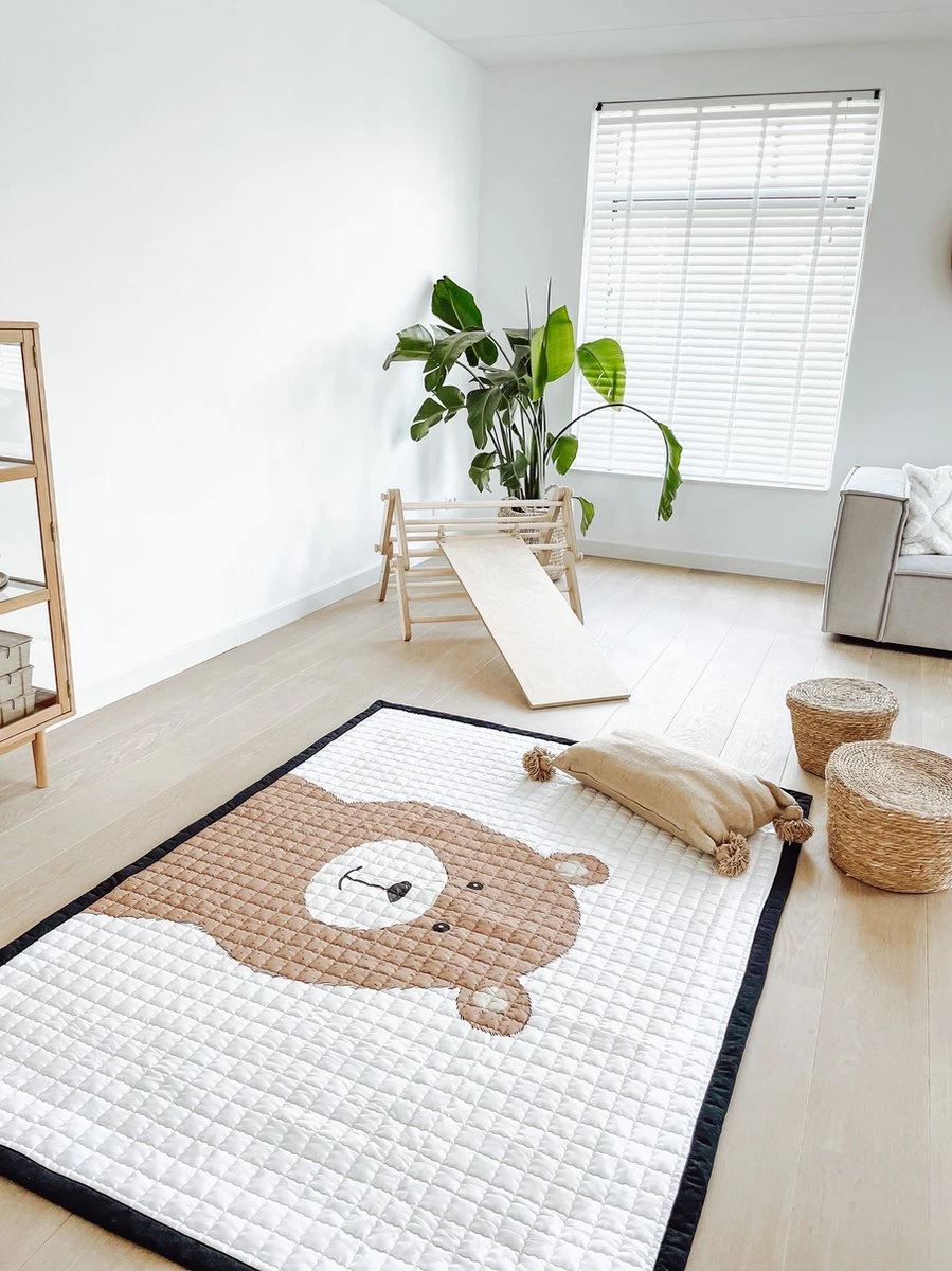 Groot speelkleed geschikt voor in de woonkamer, kinderkamer, speelhoek of gooi hem lekker buiten neer. Hij is heerlijk zacht en makkelijk schoon te maken. Creëer met deze zachte beer een leuke speelplek waar je samen kunt spelen.