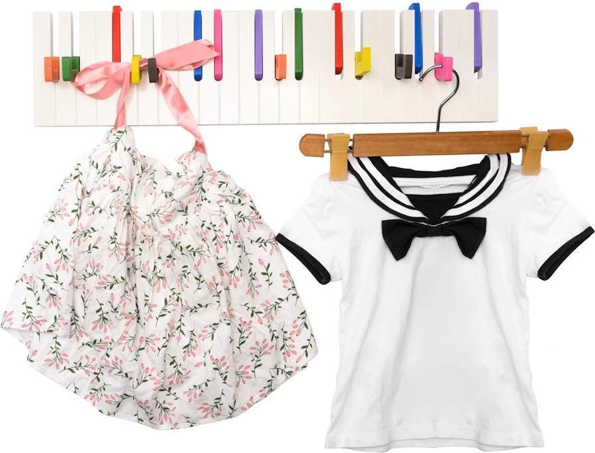 In de kinderkamer van jouw kleine, kom je altijd ruimte tekort. Met deze prachtige Piano wandkapstok creëer je snel extra ruimte om jassen en andere kledingstukken van jouw kind op te hangen. Met deze kinderkamer wandkapstok heb je zomaar ineens genoeg ruimte voor al je jassen en kleding van jouw kleine.