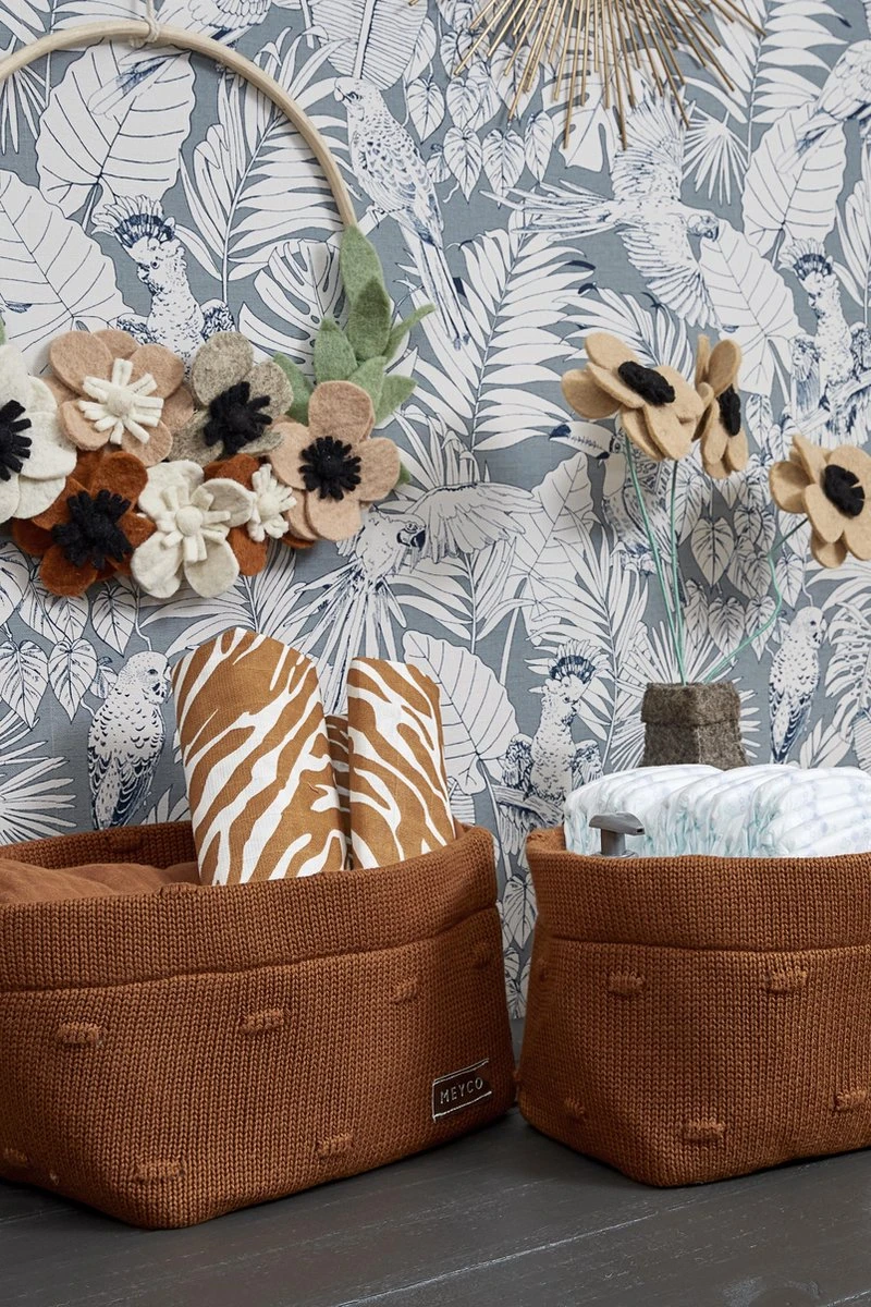 Dit gebreide Meyco Baby Commodemandje Knots ziet er niet alleen leuk uit, het is ook nog eens erg praktisch in de babykamer. Zet hem dichtbij of óp de commode en berg er alle verzorgingsproducten (of speelgoed) in op. Zo blijft alles netjes bij elkaar en heb je het zo bij de hand. Handig! De opliggende, gebreide knopen geven het mandje nét een wat speelser effect.