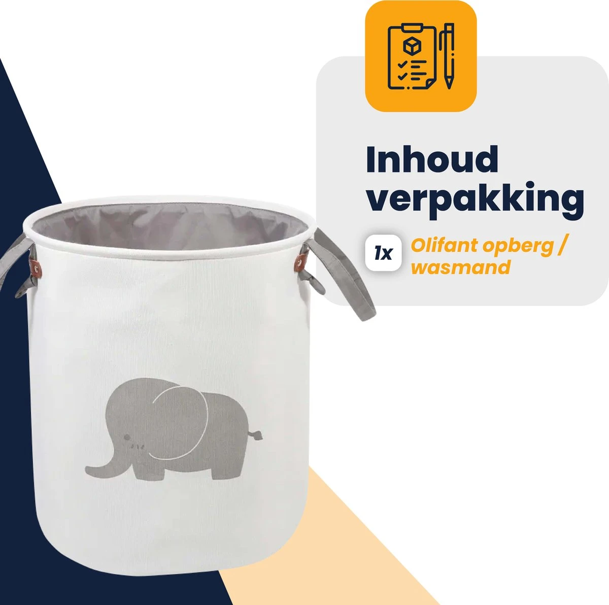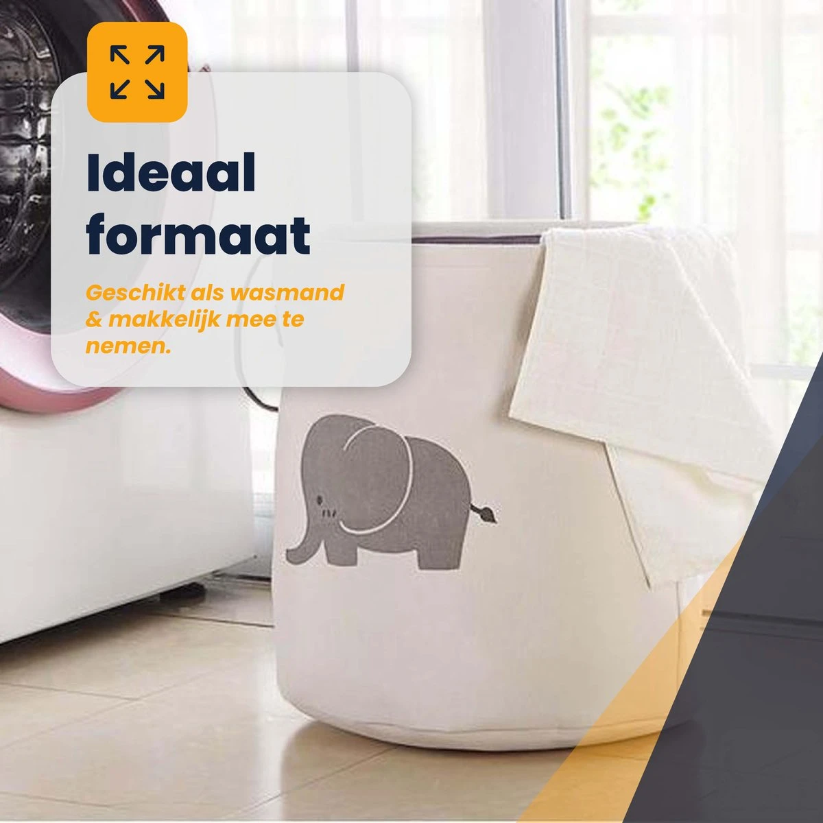 Leuke opbergmand met een opdruk van een olifant. Deze opbergmand is erg ruim en kan je ook als wasmand gebruiken. Zo kan je ook nog andere leuke spullen opbergen. Handig mee te nemen van de ene kamer naar de andere kamer door de handvatten. Zoek je nog een cadeau voor je neefje of nichtje? Dan is dit een geschikt cadeau!