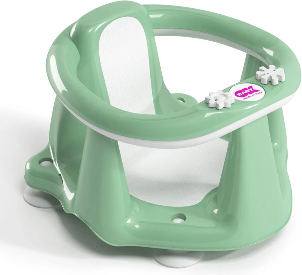 De Flipper Evolution badring is een zitje met ergonomisch design. Het is makkelijk te bevestigen in bad met behulp van zuignappen. Afmetingen 35 x 24 x 38 cm.