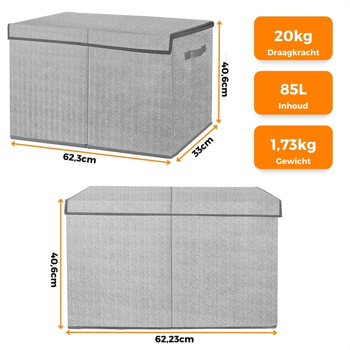 De stevige deksel zorgt ervoor dat het speelgoed beschermd is tegen stof, wat betekent dat het speelgoed langer schoon en in goede staat blijft. Bovendien geeft het de speelkamer een opgeruimde uitstraling wanneer het speelgoed opgeruimd is in de kist en het deksel erop zit.