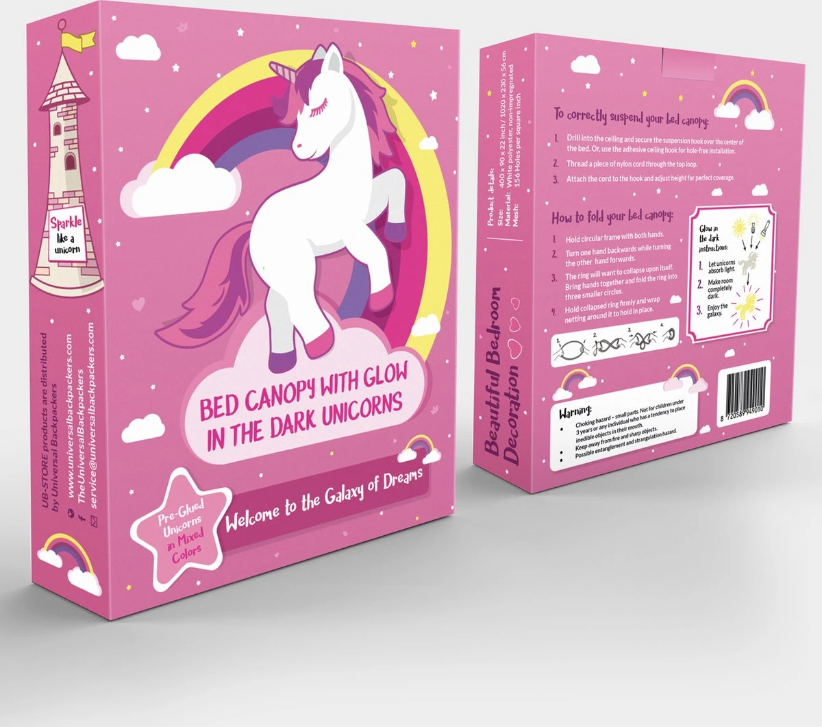Maak de slaapkamer nog attractiever met deze mooie eenhoorn klamboe. Stimuleer de creativiteit van je kinderen en stuur ze op ontdekkingstocht in hun eigen melkweg. Deze klamboe biedt perfect luchtcirculatie en comfort om onder te slapen. Naar bed gaan was nog nooit zo een feestje geweest. Zijn je kinderen bang om in het donker te slapen? Naar bed gaan was nog nooit zo makkelijk met deze glow in de dark eenhoorn. Onze producten zijn gemaakt met uiterste nauwkeurigheid en strenge kwaliteitscontroles.