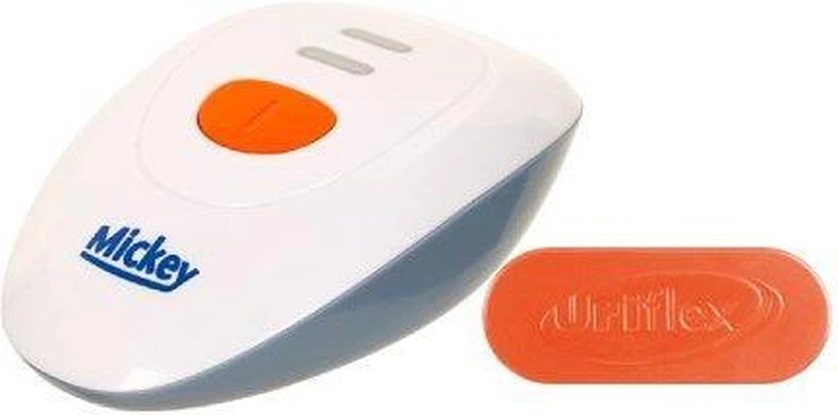 Deze wekker is voor kinderen die relatief makkelijk wakker worden. Tijdens deze plaswekkertraining draagt uw kind ’s nachts speciale Urifoon sensorbroekjes. Dit ziet eruit als normaal ondergoed, maar zijn binnenin voorzien van sensordraden. Boven op zitten twee drukknopjes waar een kleine zender bevestigd wordt. Deze staat in (draadloze) verbinding met de Mickey ontvanger, welke u naast het bed zet.