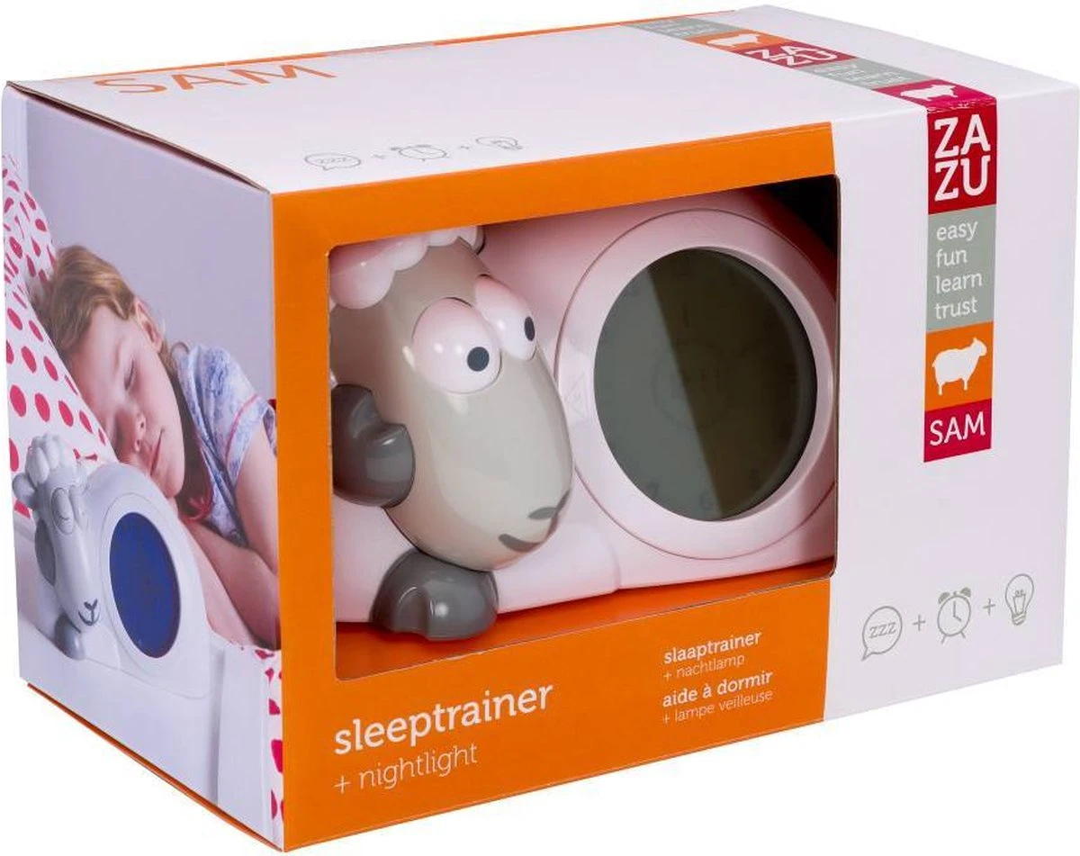 De Sam slaaptrainer helpt je kind wennen aan het tijdsbesef van “grote mensen”. Op een hele eenvoudige manier laat de Sam slaaptrainer je kind zien wanneer hun ouders ’s ochtends blij zijn om hen te zien, en wanneer ze beter nog heel eventjes in bed kunnen blijven liggen. Doormiddel van verschillende kleuren displays wordt dit gedaan.
